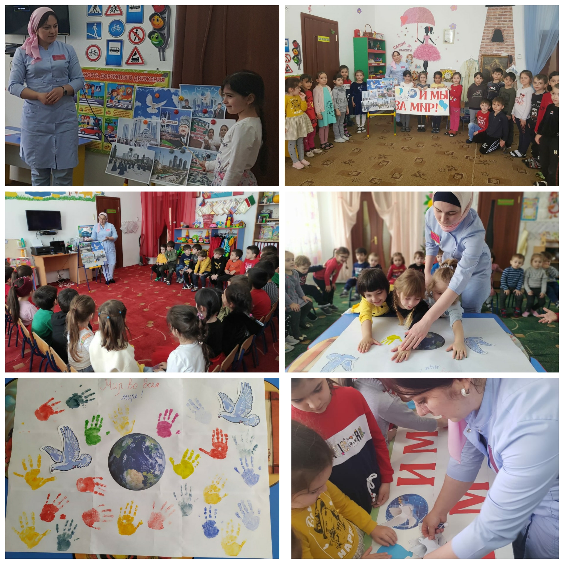 16.04.2021У нас в детском саду с воспитанниками старших и средних возрастных групп, проведены тематические беседы "Мир во всем мире" посвященные Дню мира в Чеченской Республике.