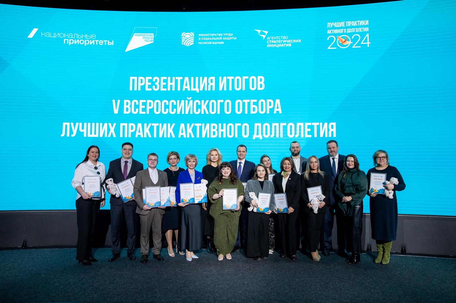 17 марта 2025 года на площадке Координационного центра Правительства РФ состоялась презентация итогов и награждение победителей пятого Всероссийского отбора лучших практик активного долголетия. В мероприятии приняли участие Заместитель Председателя Правительства РФ Татьяна Голикова, Министр труда и социальной защиты РФ Антон Котяков, генеральный директор АНО «Национальные приоритеты» София Малявина и эксперты. На пятый Всероссийский отбор лучших практик активного долголетия было направлено 2684 заявки из 89 регионов России.
