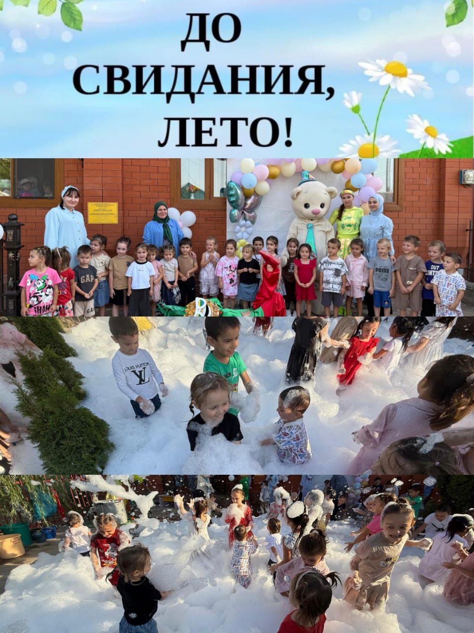В детском саду с целью реализации плана на летний оздоровительный период в детском саду было проведено праздничное мероприятия на тему «Проводы лета». Мероприятие было проведено под музыкальное сопровождение. Были приглашены аниматоры, которые устроили для детей мыльное шоу. Дети были в восторге. Праздник прошел в радостной обстановке.
