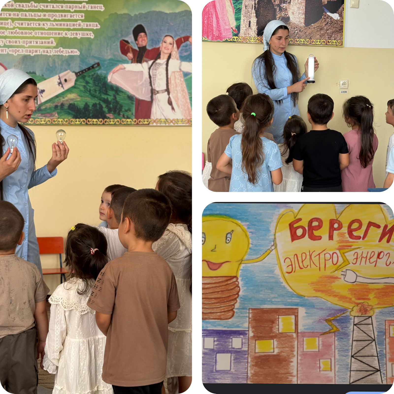 На занятии мы узнали, откуда берется электричество и почему его нужно беречь. Играли, отгадывали загадки и обещали всегда выключать свет! Наши дети - молодцы!
