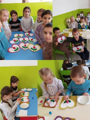 В целях воспитания уважения к чеченской женщине, воспитатель вместе с воспитанниками подготовили поздравительные открытки для любимых мам.
