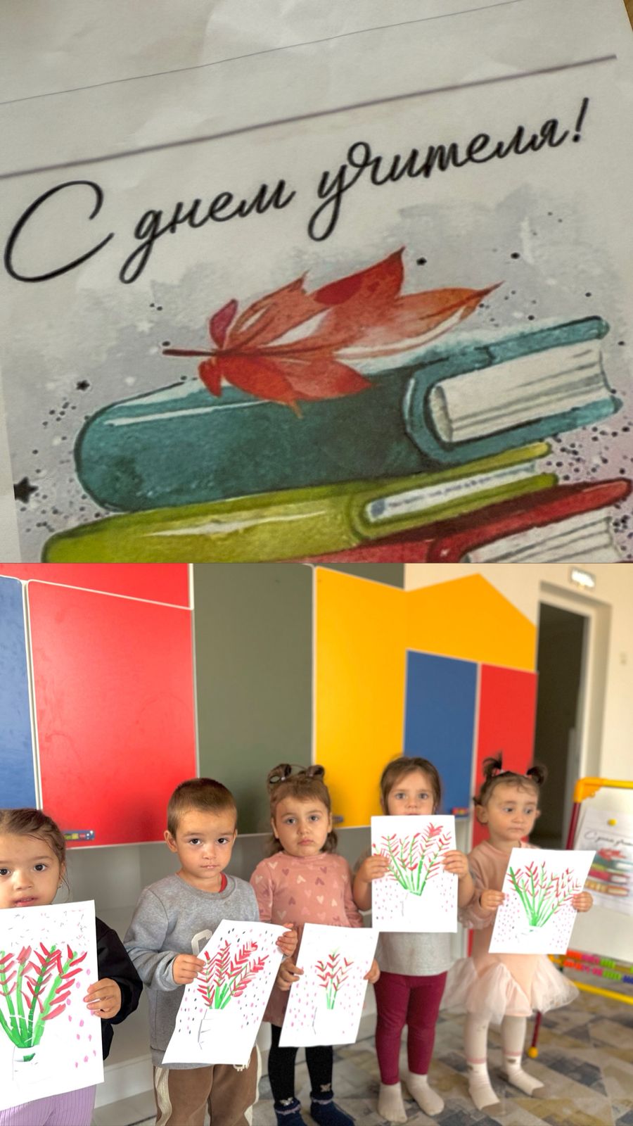 5 октября традиционно по всей стране отмечается такой замечательный праздник — День учителя. Это праздник благодарности всем-всем учителям, за их неоценимый вклад в развитие души человека. Низкий поклон всем учителям, которые вкладывают душу, любовь, знания детям которые им пригодятся в жизни. Воспитанники нашего детского сада тоже не остались в стороне, и так же поспешили поздравить всех учителей с праздником, посвящённому "Дню учителя". Во всех группах проводились также тематические беседы. Воспитатели объяснили воспитанникам важность этого праздника и важность самого учителя.