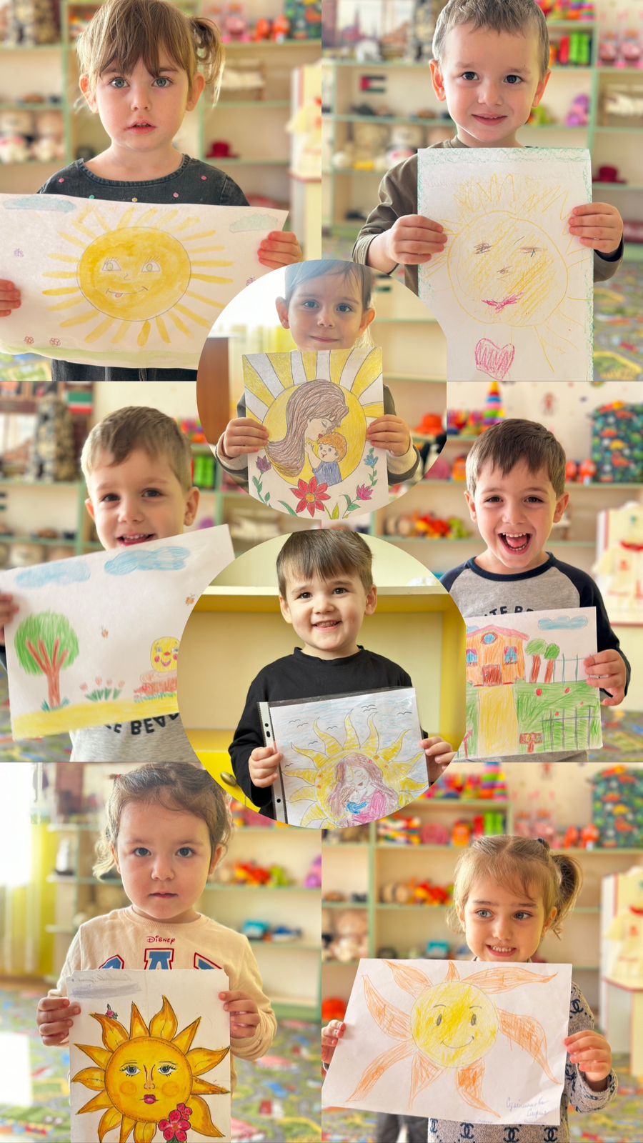 07.11.2025Конкурс детских рисунков «Мама, солнышко моё!» проходил в тёплой, доброжелательной атмосфере.В конкурсе приняли участие воспитанники всех возрастных групп детского сада.Дети с большим интересом и вдохновением создавали рисунки, посвящённые самым дорогим людям — своим мамам.В своих работах ребята изображали мам в разных ситуациях: вместе на прогулке, дома, за чтением книги, на кухне, в саду.Каждый рисунок отличался индивидуальностью, искренностью чувств и детской непосредственностью.Воспитатели провели предварительные беседы о семье и о маме, читали стихи, рассматривали иллюстрации, что помогло детям передать в рисунках нежность, заботу и любовь.Работы были размещены на выставке в группах и холле детского сада, что позволило всем посетителям и родителям насладиться детским творчеством.⸻Итоги конкурса:По результатам просмотра работ жюри определило победителей: