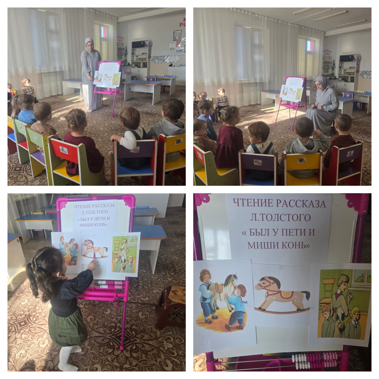 В МБДОУ «ДЕТСКИЙ САД» ИРС» «СТ. КУРДЮКОВСКАЯ» с воспитанниками группы раннего возраста"Лунтик" проведено занятие по "Развитию речи" на тему: Чтение рассказа Л.Толстого "Был у Пети и Миши конь"Цель:познакомить детей с новым произведением.