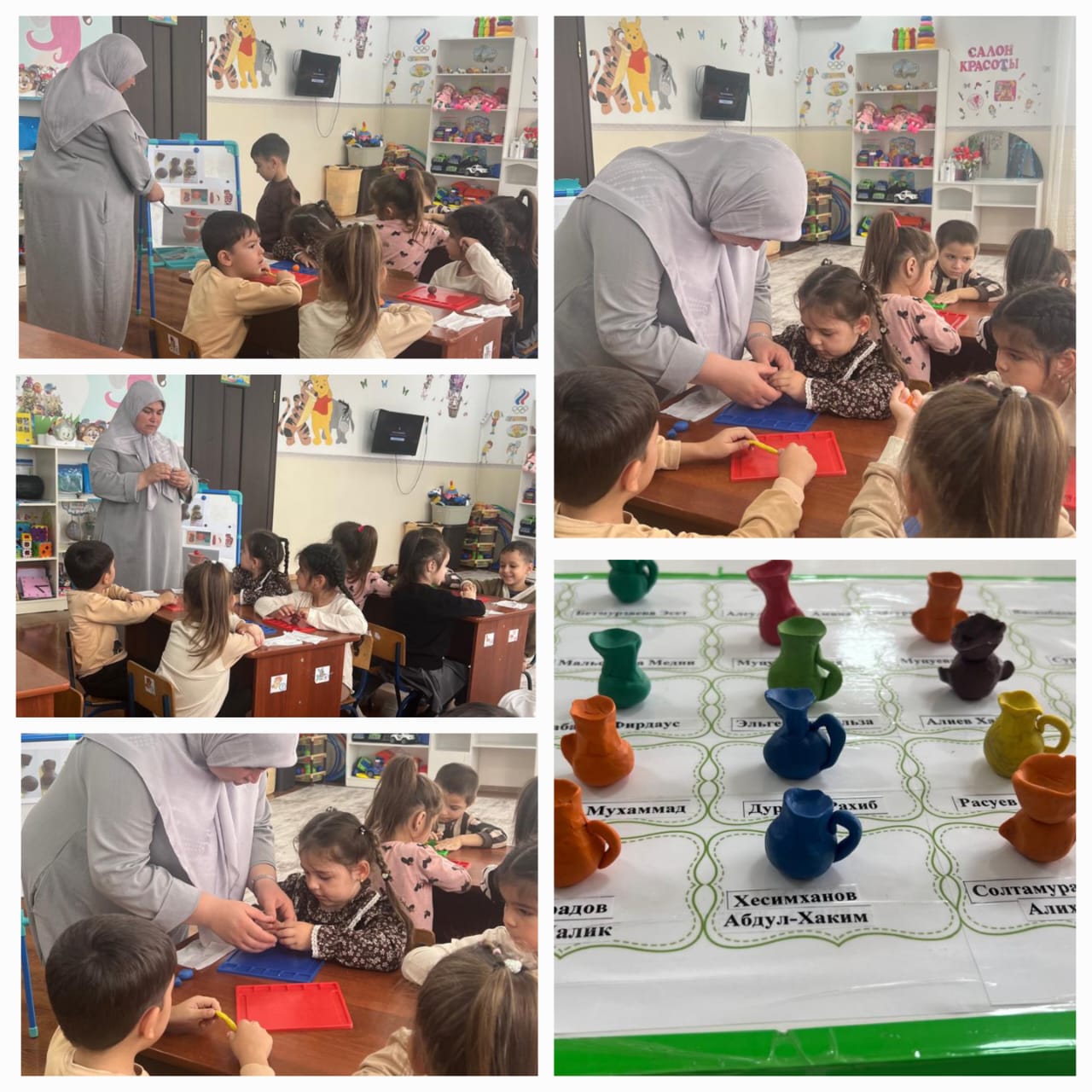 В МБДОУ «ДЕТСКИЙ САД» ИРС» «СТ. КУРДЮКОВСКАЯ» с воспитанниками старшей группы "Звездочка" проведено занятие по "Художественно-этететическому развитию(лепка)" на тему : "Кувшин"Цель: Учить детей создавать изображение посуды (кувшин с высоким горлышком) из целого куска пластилина.