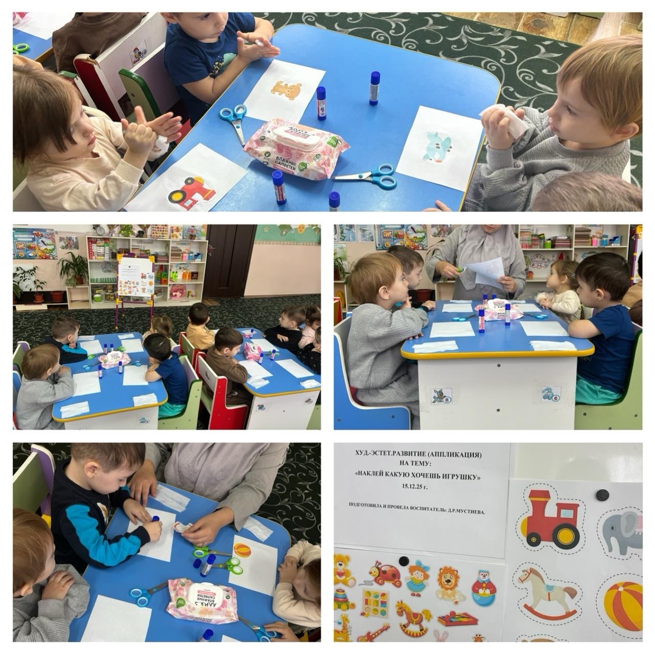 15.12.2025В МБДОУ «ДЕТСКИЙ САД» «ИРС» «СТ КУРДЮКОВСКАЯ» с воспитанниками младшей группы «РАДУГА» проведено занятие по «Художественно-эстетическому развитию» (аппликация ) на тему: «Наклей какую хочешь игрушку». Цель:Упражнять в правильных приемах составления изображения из частей,наклеивания.Закреплять знания о форме и величине.