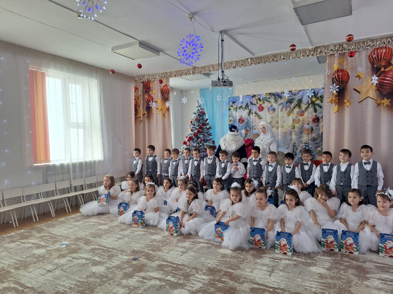 Все группы успешно провели утренники согласно графику.Дети получили подарки и проявили положительные эмоции.Особое внимание заслуживает средняя группа «Ромашки» за творческий подход к костюмам и активное участие всех детей.