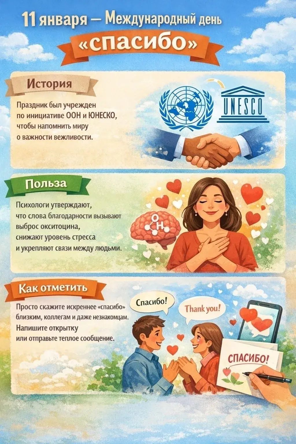 Каждый год 11 января весь мир празднует  Международный ДЕНЬ СПАСИБО