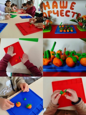 Лепка."Мандарины и апельсины"Цельразвитие мелкой моторики и сенсорных навыков, обучение детей созданию объемных предметов круглой формы разного размера путем раскатывания пластилина, а также закрепление знаний о форме, цвете и величине фруктов.