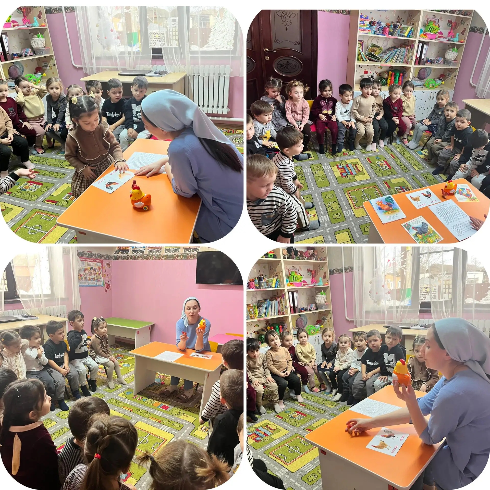 24.12.2025Младшая группа "Звездочки"Познание (ФЭМП)Тема: " Знакомство с куриным семейством "Цель: дать детям первоначальные представления о его составе (петух, курица, цыплята) и внешних отличиях, научить их узнавать птиц на картинках и в игрушках, а также воспроизводить и подражать их звукам.