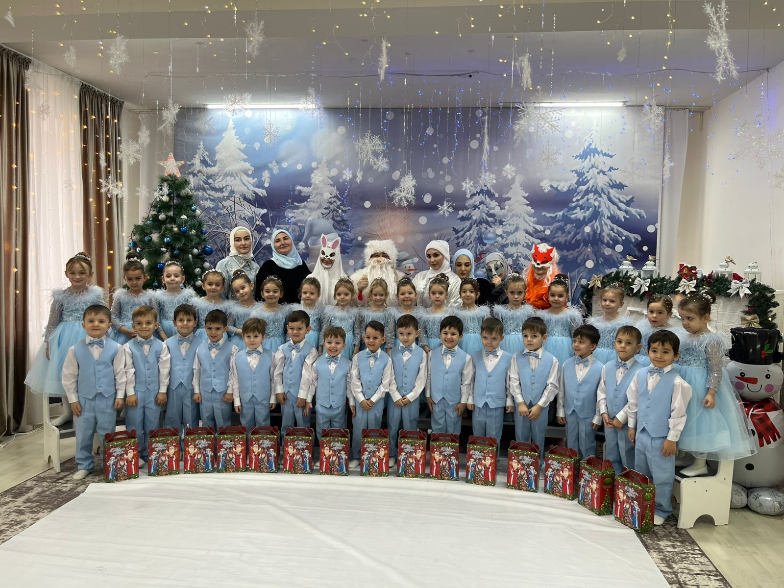 На утренники дети пришли в детский сад нарядные, весёлые в предвкушении праздника. И их надежды оправдались. Мы постарались от души. Воспитатели, участвовавшие, в новогоднем представлении, а была у нас запланирована сказка «Снежная королева» проявили себя хорошими артистами, показав всё своё творческое мастерство, артистизм, задор и организаторские способности. На каждом утреннике сказочные герои увлекли детей в волшебный мир сказки. Дети смогли окунуться в праздничную атмосферу приключений, поучаствовать в интересных конкурсах. С появлением Деда Мороза начался настоящий праздник с песнями и танцами, хороводами. После представления дети фотографировались с персонажами, получали новогодние подарки.