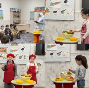 Цель: познакомить с работой повара; расширять знания и представления детей о профессиях; развивать кругозор, обогащать словарный запас; воспитывать уважение к людям труда.