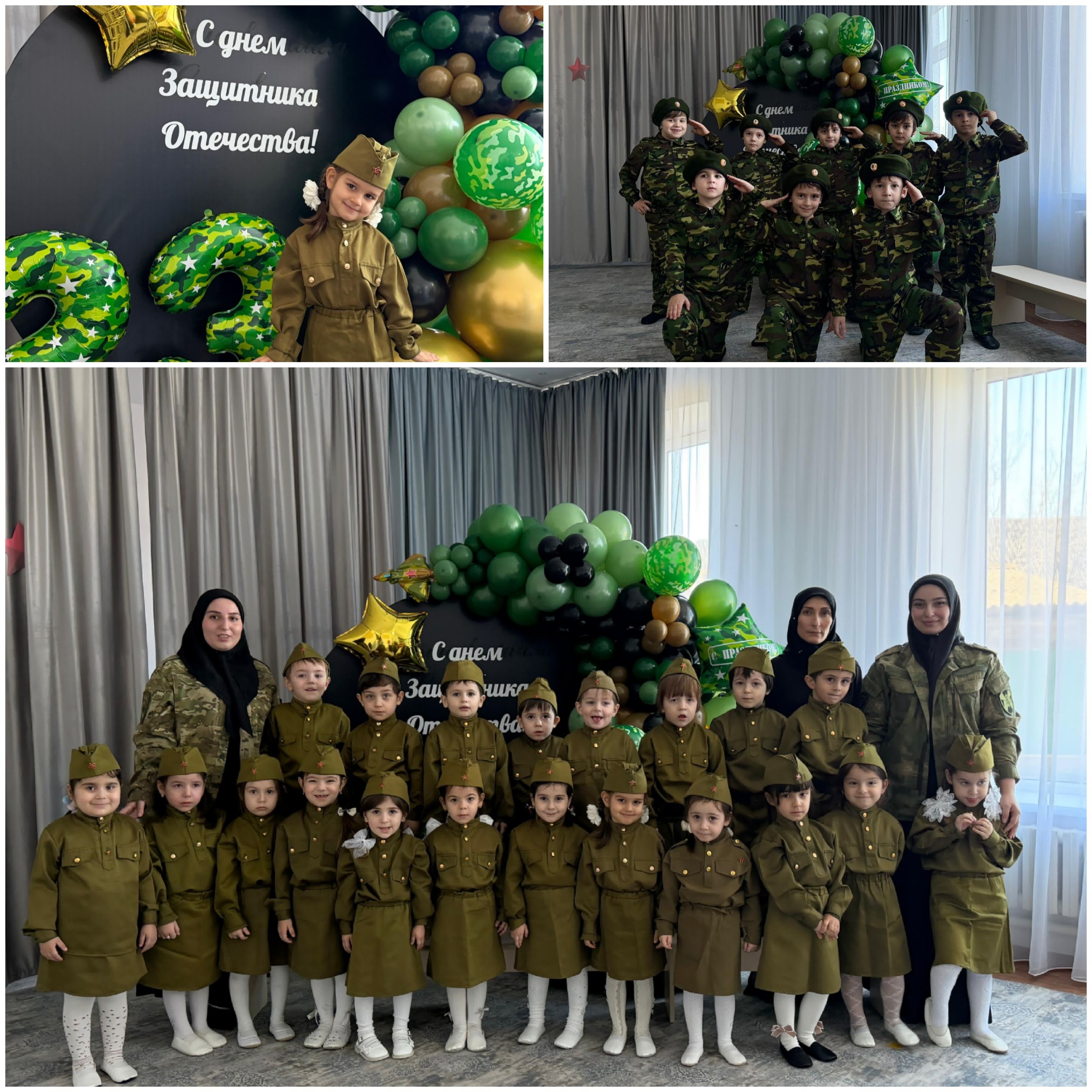 Воспитатели Жанета Авалуевна и Хадижат Султановна и музыкальный руководитель Петимат Вахаевна вместе с воспитанниками средней группы «Улыбка» подготовили и провели конкурс «А ну-ка, мальчики!» и утренник «День Защитников Отечества». В состязаниях дети показали творческие и физические качества. Болельщики каждой команды эмоционально-заинтересовано следили за ходом конкурса, поддерживая свою команду. А также рассказывали стихи, пели песни. Все участники утренника были одеты в военные формы, что особенно украшало праздник. Следует отметить и позитивную атмосферу, созданную оформлением зала и пособия, для проведения мероприятий, посвященные Дню защитника Отечества.