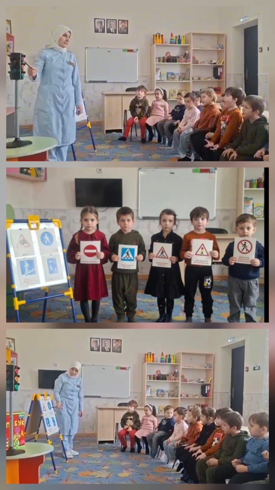 Цель: закрепить у детей знания о правилах дорожного движения, значении сигналов светофора (красный, желтый, зеленый) и его роли в регулировании движения, а также развивать внимание, зрительное восприятие и навыки безопасного поведения на дороге.