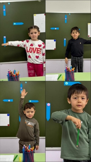 Познавательное развитие в средней группе "Седарчий" провела воспитатель Эдилханова Аминат.Математические представления - движение вперед в заданном направлении: вперед, назад, налево, направо.