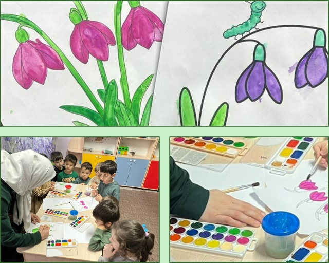 В МБДОУ «Детский сад № 5 «Колобок» с. Алхан-Кала» состоялся открытый просмотр образовательной деятельности по художественно-эстетическому развитию в средней группе «Бабочки» на тему «Первый подснежник».Дети с большим воодушевлением создавали изображения нежного весеннего цветка, используя разнообразные техники рисования. Под руководством воспитателя малыши осваивали кистевую роспись, учились передавать форму и цвет подснежника, развивая мелкую моторику, эстетическое восприятие и любовь к природе родного края.В завершение занятия воспитанники приняли участие во Всероссийском флешмобе «Мой язык — моя гордость», прочитав на чеченском языке стихотворение о весне и первоцветах. Дети с гордостью демонстрировали знание родного языка, подчеркивая его красоту и значимость в сохранении культурного наследия.Мероприятие стало ярким примером гармоничного сочетания художественно-творческого развития и духовно-нравственного воспитания дошкольников.