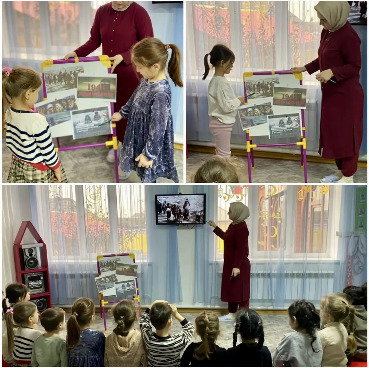 Во время беседы воспитатель подчеркнула, как важно помнить историю своего народа, уважать старших и бережно относиться к родному краю. Дети слушали рассказ воспитателя, задавали вопросы, делились тем, что слышали от родителей и бабушек с дедушками.