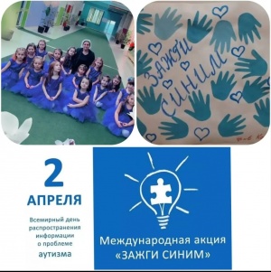 У нас в детском саду прошла акция «Зажги синим» — это ежегодное мероприятие 2 апреля, приуроченное к Всемирному дню распространения информации об аутизме. Цель — воспитание толерантности, информирование о РАС (расстройствах аутистического спектра) и поддержка семей. Детский сад оформляют в синих тонах, используют синюю одежду, ленточки, проводят тематические занятия и выставки рисунков